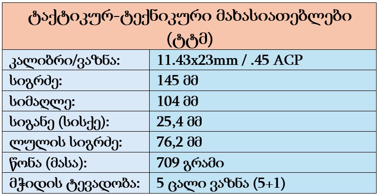 და მოკლე სახელურის გამო .45 ACP ტიპის ვაზნაზე გათვლილი პისტოლეტის უკუცემა იყო საგრძნობლად